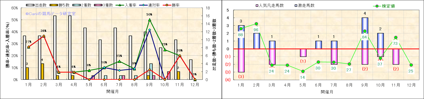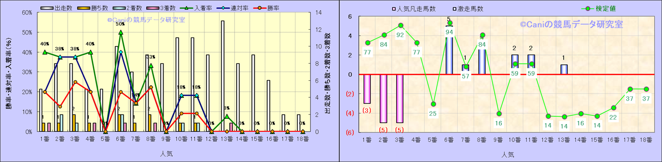 人気凡走馬:1-3番人気で着外、激走馬:5-18番人気で入着 |