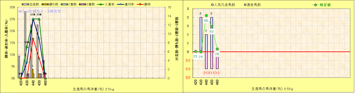 牝産駒の体重別成績-近3年- |