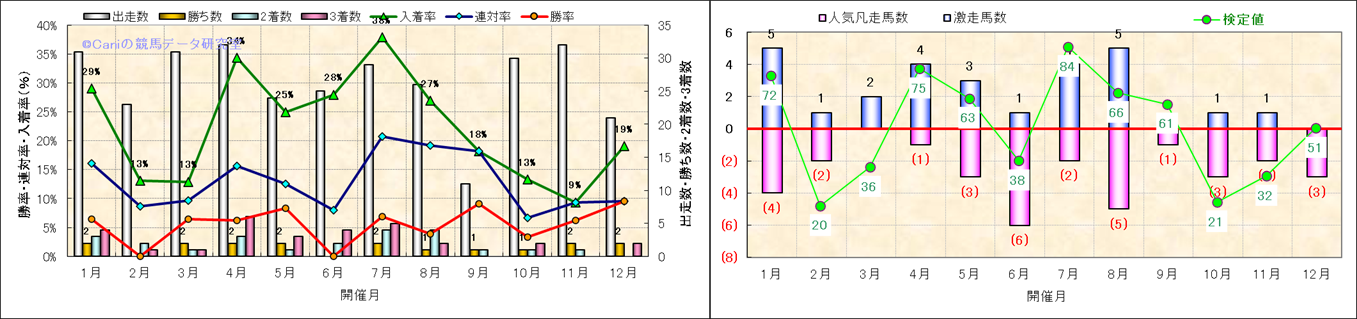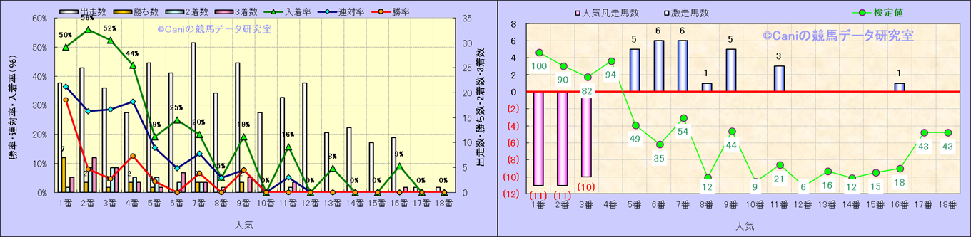 人気凡走馬:1-3番人気で着外、激走馬:5-18番人気で入着 |