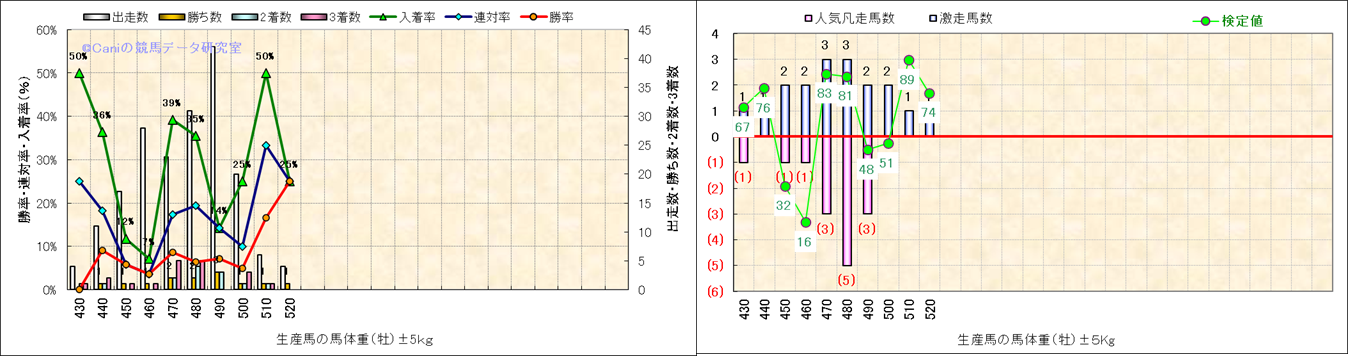 牡産駒の体重別成績-近3年- |