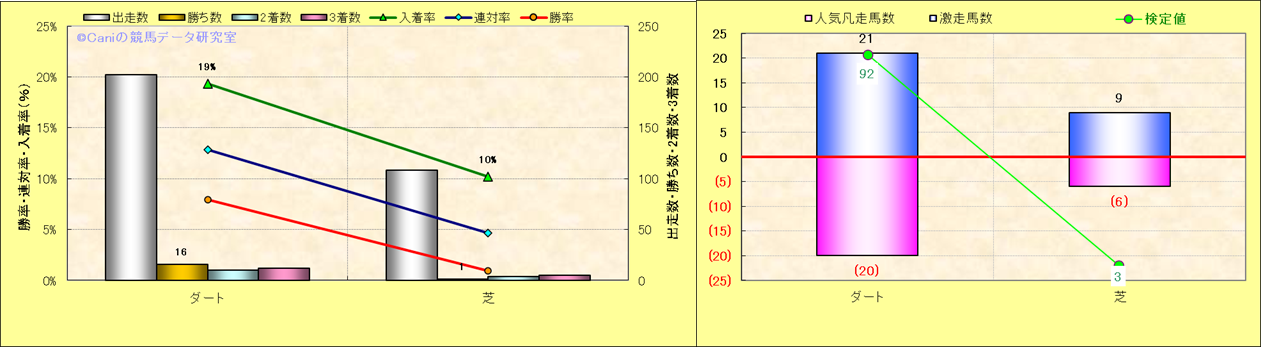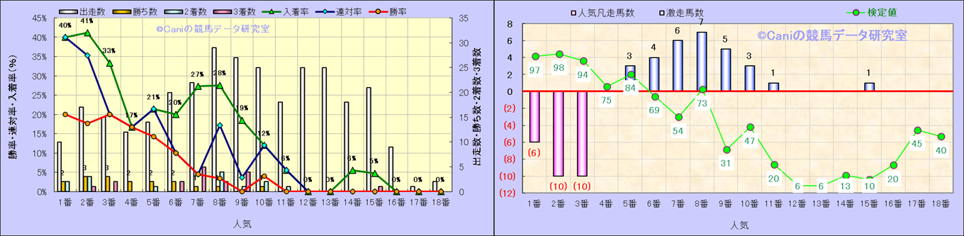 人気凡走馬:1-3番人気で着外、激走馬:5-18番人気で入着 |
