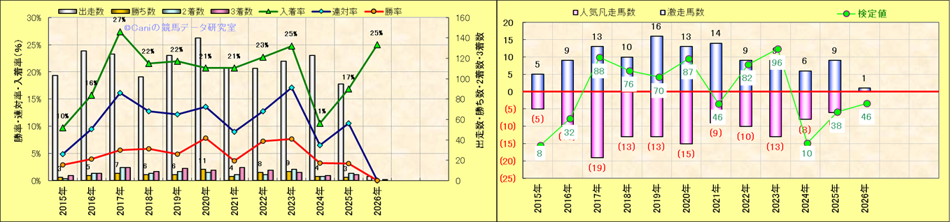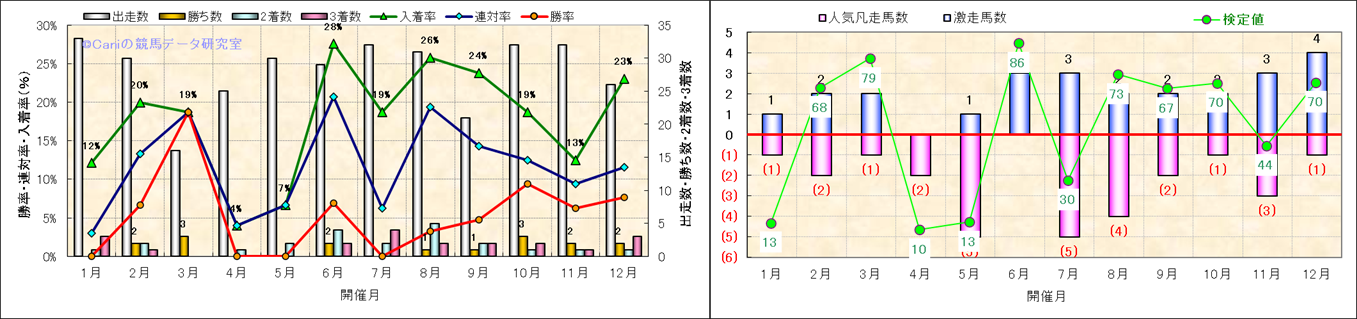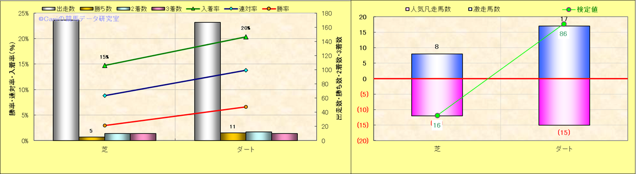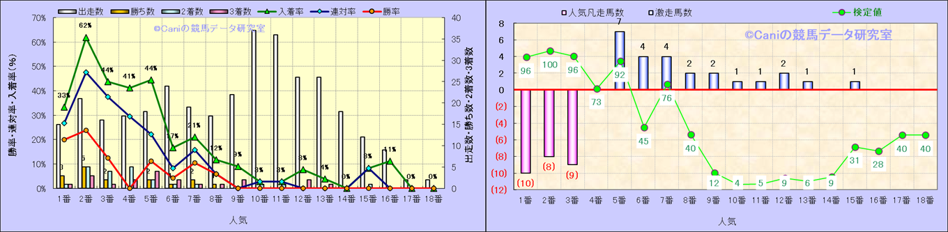 人気凡走馬:1-3番人気で着外、激走馬:5-18番人気で入着 |