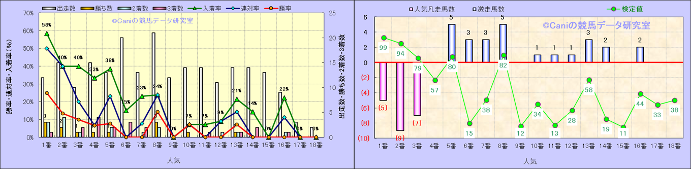 人気凡走馬:1-3番人気で着外、激走馬:5-18番人気で入着 |