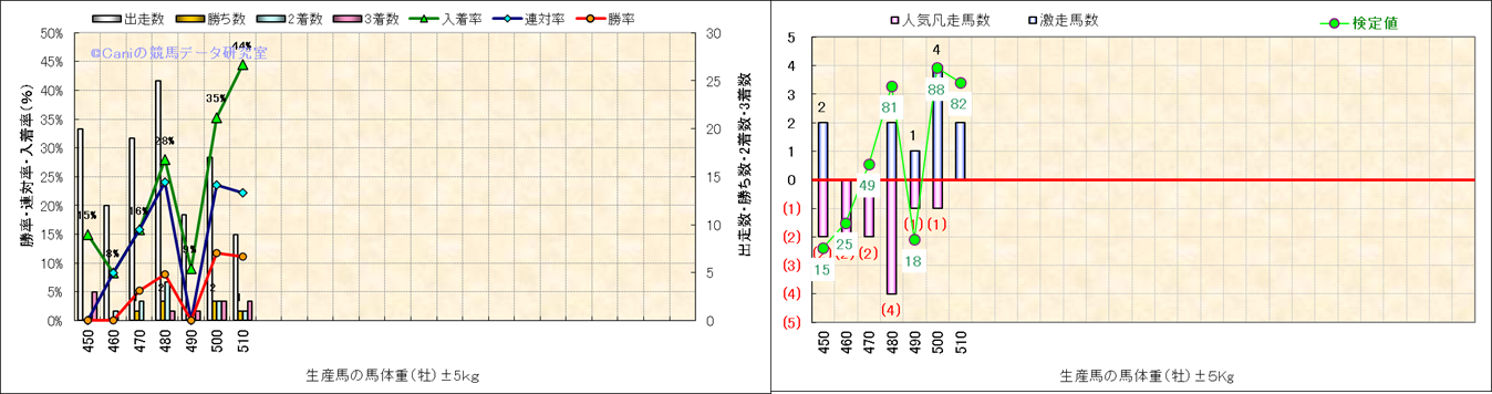 牡産駒の体重別成績-近3年- |