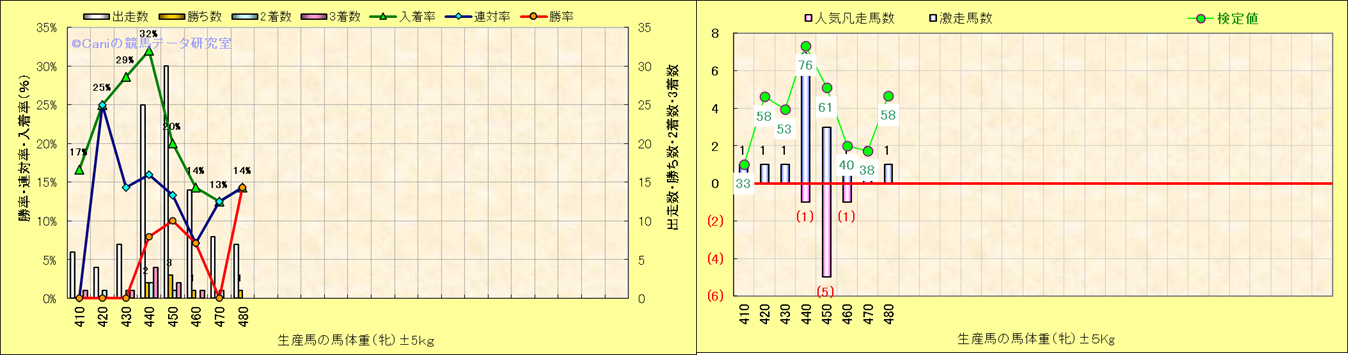 牝産駒の体重別成績-近3年- |