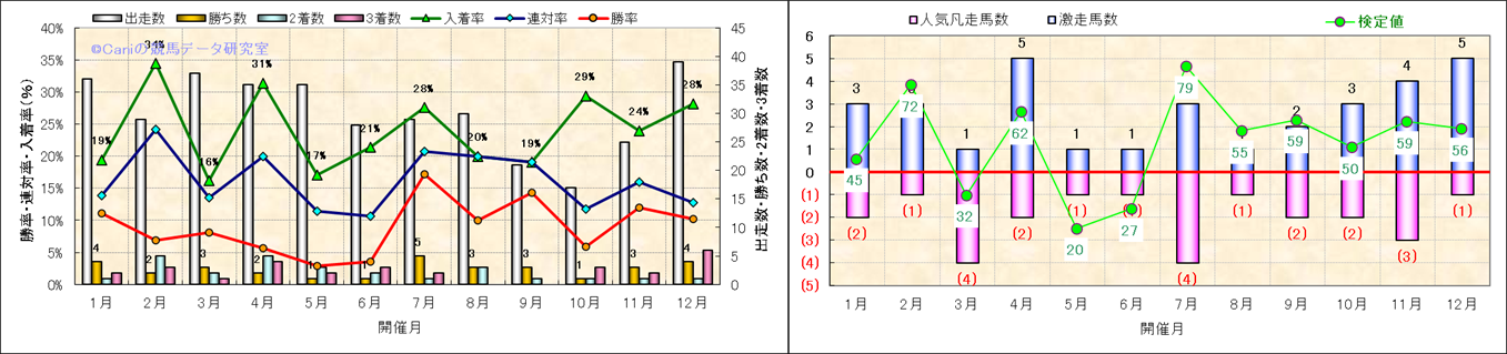 人気凡走馬:1-3番人気で着外、激走馬:5-18番人気で入着 |