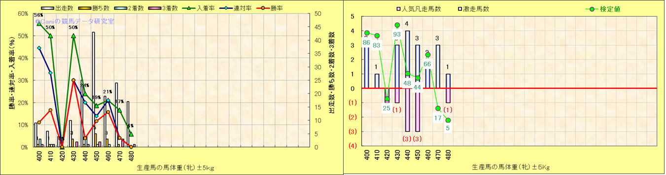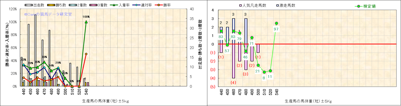 牡産駒の体重別成績-近3年- |