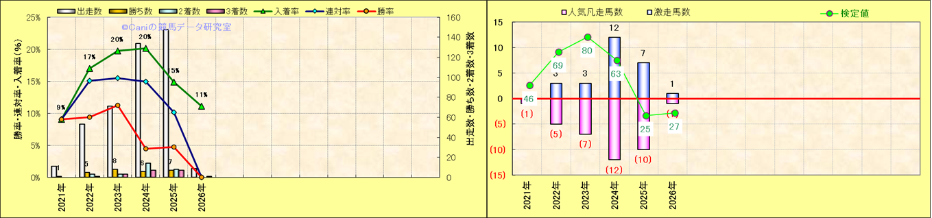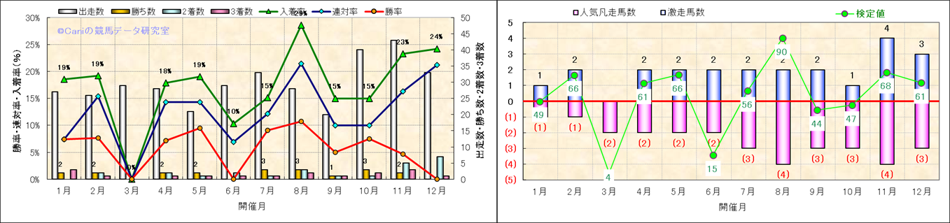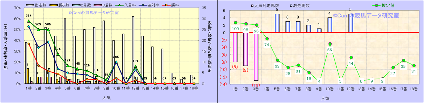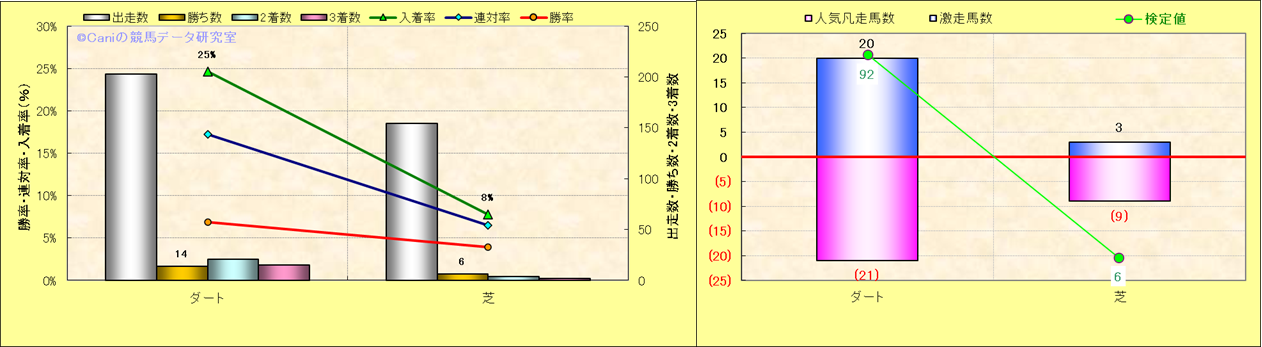 人気凡走馬:1-3番人気で着外、激走馬:5-18番人気で入着 |