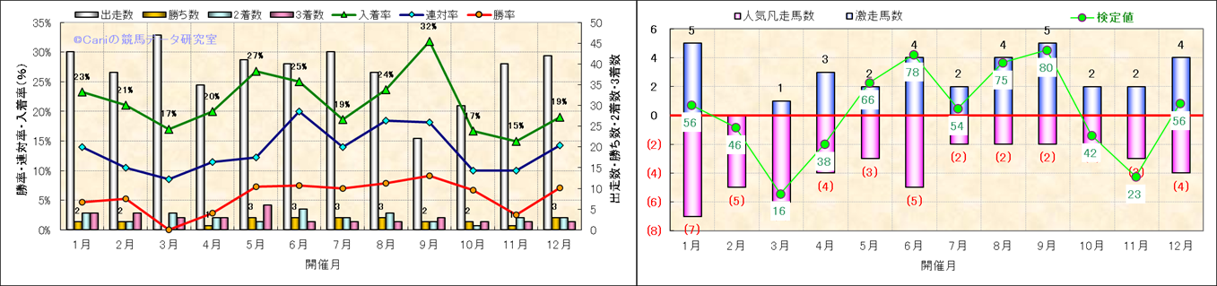人気凡走馬:1-3番人気で着外、激走馬:5-18番人気で入着 |