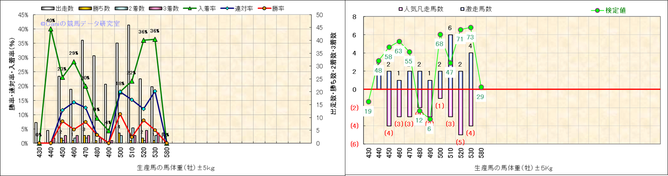 牡産駒の体重別成績-近3年- |