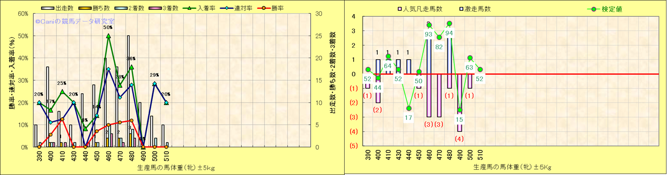 牝産駒の体重別成績-近3年- |
