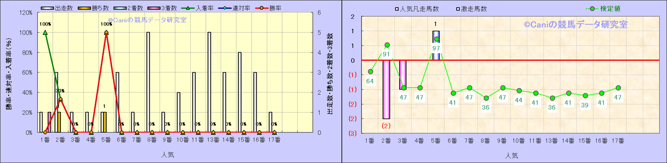 人気凡走馬:1-3番人気で着外、激走馬:5-18番人気で入着 |