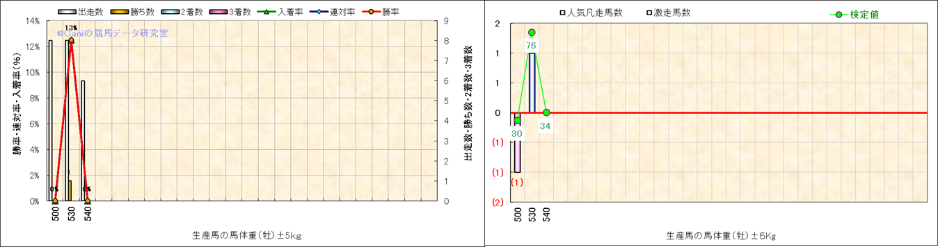 牡産駒の体重別成績-近3年- |