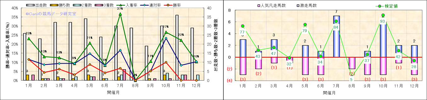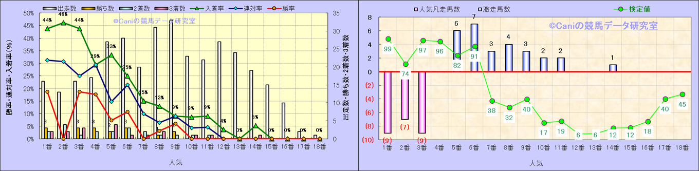 人気凡走馬:1-3番人気で着外、激走馬:5-18番人気で入着 |