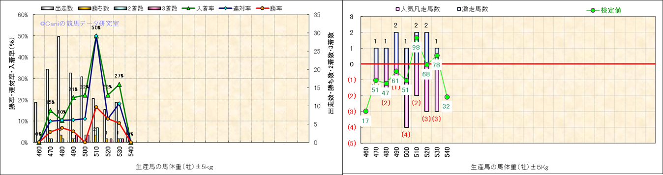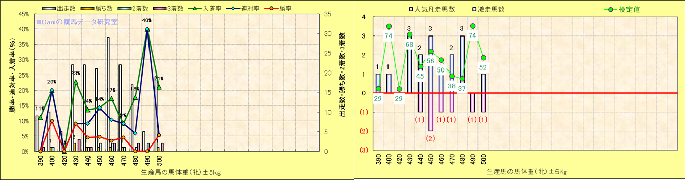 牡産駒の体重別成績-近3年- |