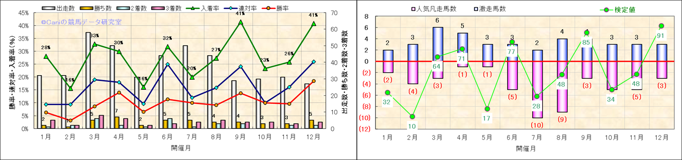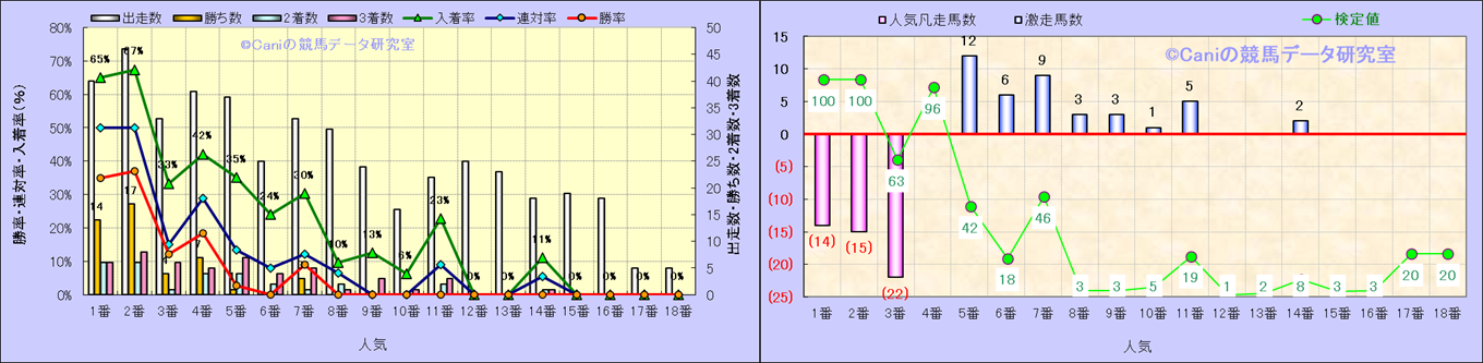 人気凡走馬:1-3番人気で着外、激走馬:5-18番人気で入着 |