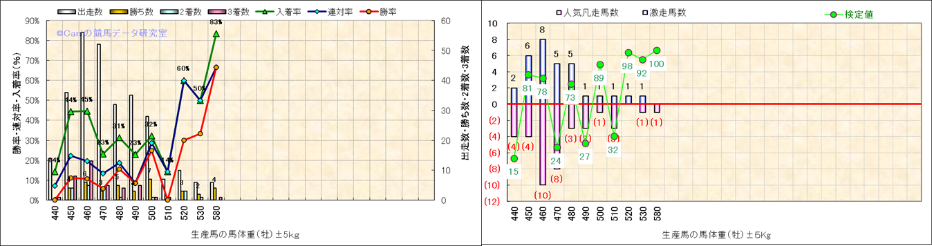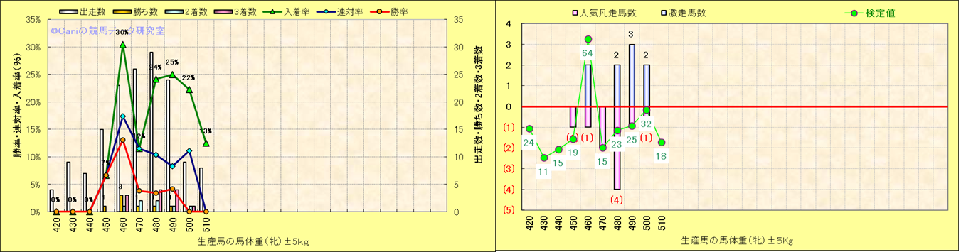 牡産駒の体重別成績-近3年- |