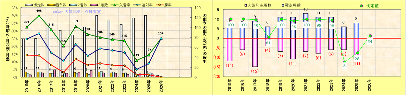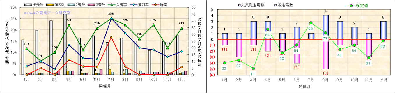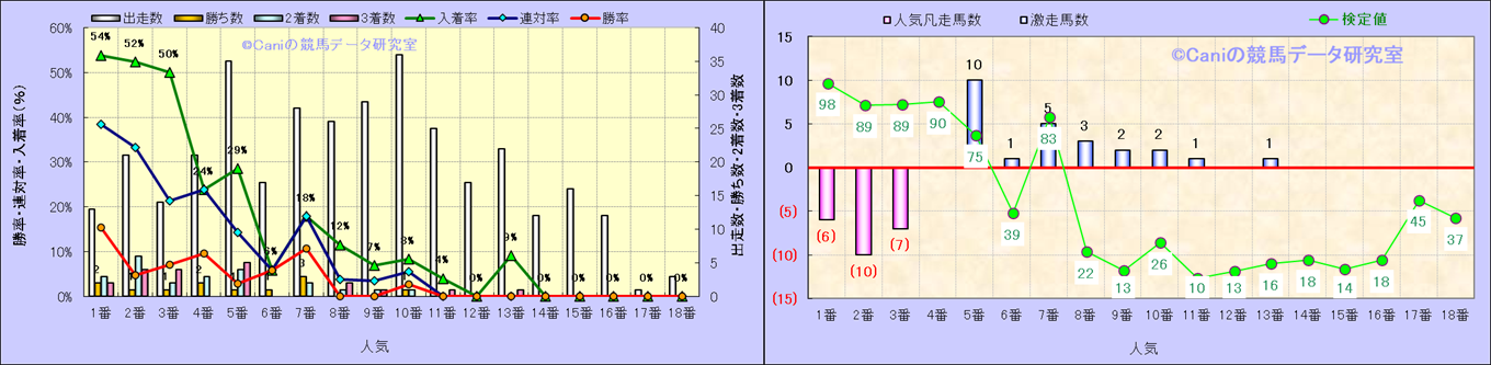 人気凡走馬:1-3番人気で着外、激走馬:5-18番人気で入着 |
