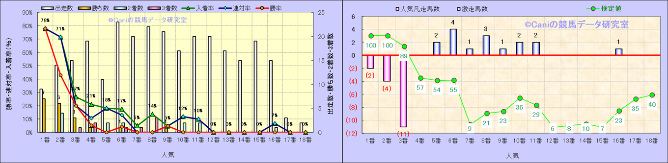人気凡走馬:1-3番人気で着外、激走馬:5-18番人気で入着 |