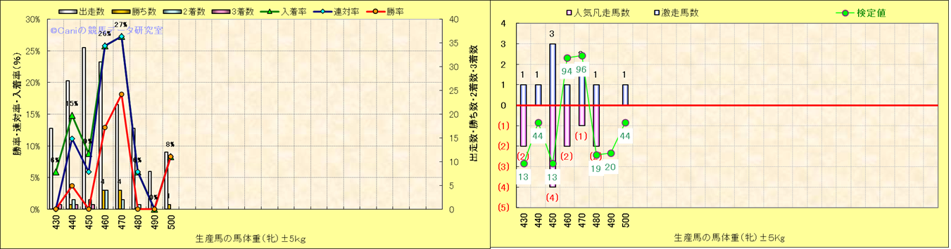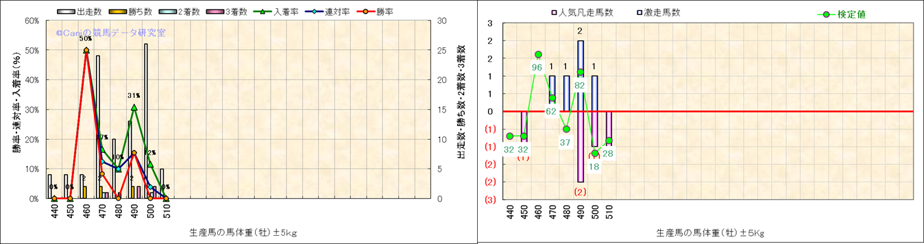 牡産駒の体重別成績-近3年- |