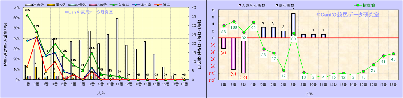 人気凡走馬:1-3番人気で着外、激走馬:5-18番人気で入着 |