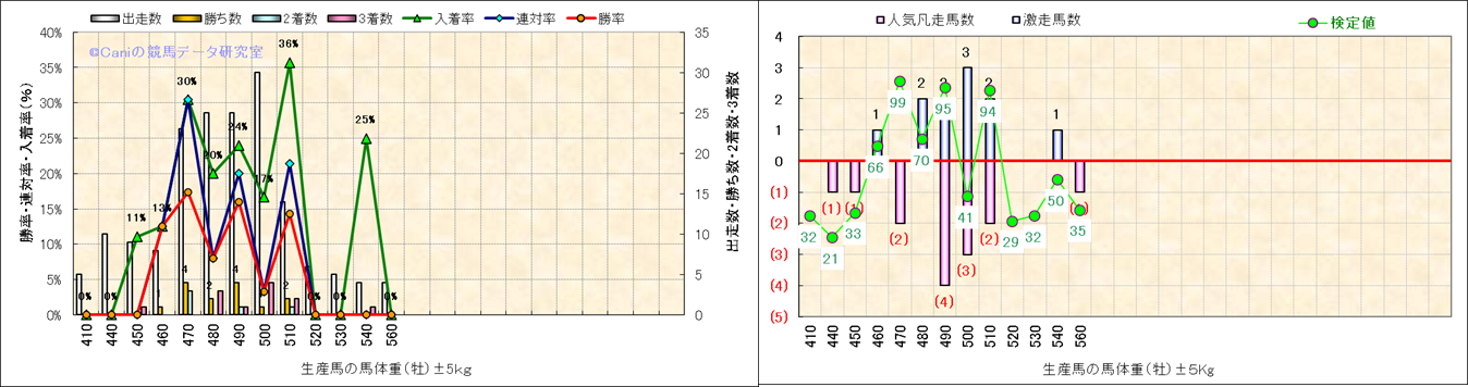 牡産駒の体重別成績-近3年- |