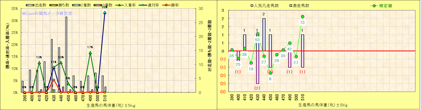牝産駒の体重別成績-近3年- |