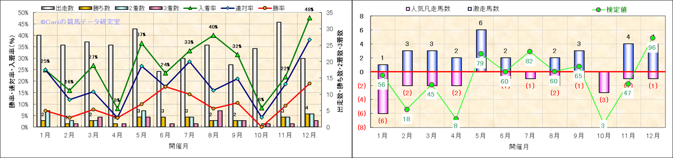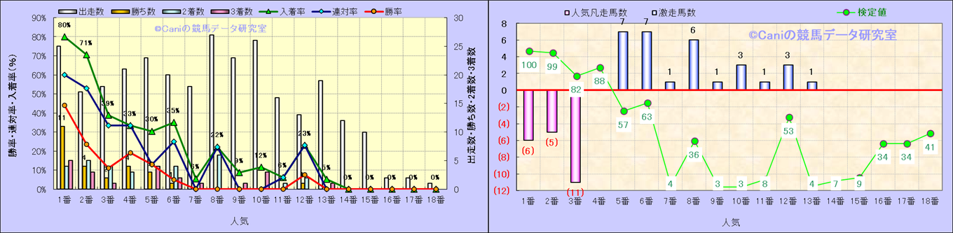 人気凡走馬:1-3番人気で着外、激走馬:5-18番人気で入着 |