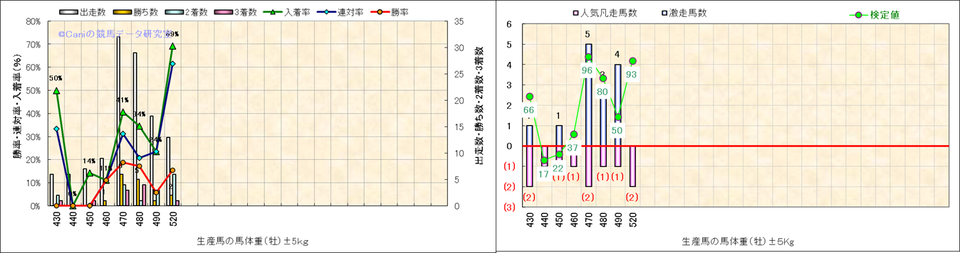 牝産駒の体重別成績-近3年- |