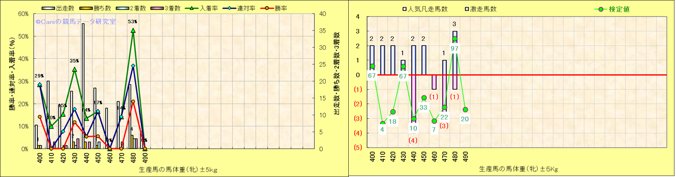 牡産駒の体重別成績-近3年- |