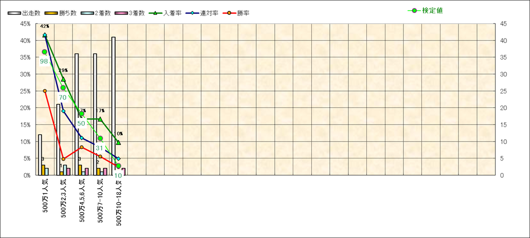 日曜京都06R::12,1,2月の4歳以上500万条件京都ダート1200m(2023/01/19以降)の解析 |