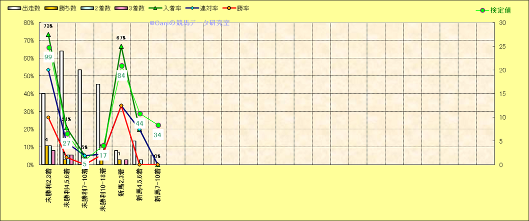 | 土曜阪神04R::2,3,4月の3歳未勝利条件阪神芝2400m外(2023/03/02以降)の解析 |