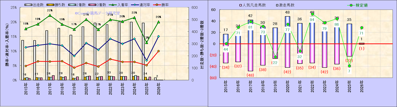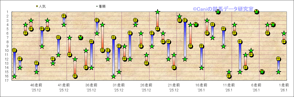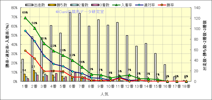 人気凡走馬:1-3番人気で着外、激走馬:5-18番人気で入着 |