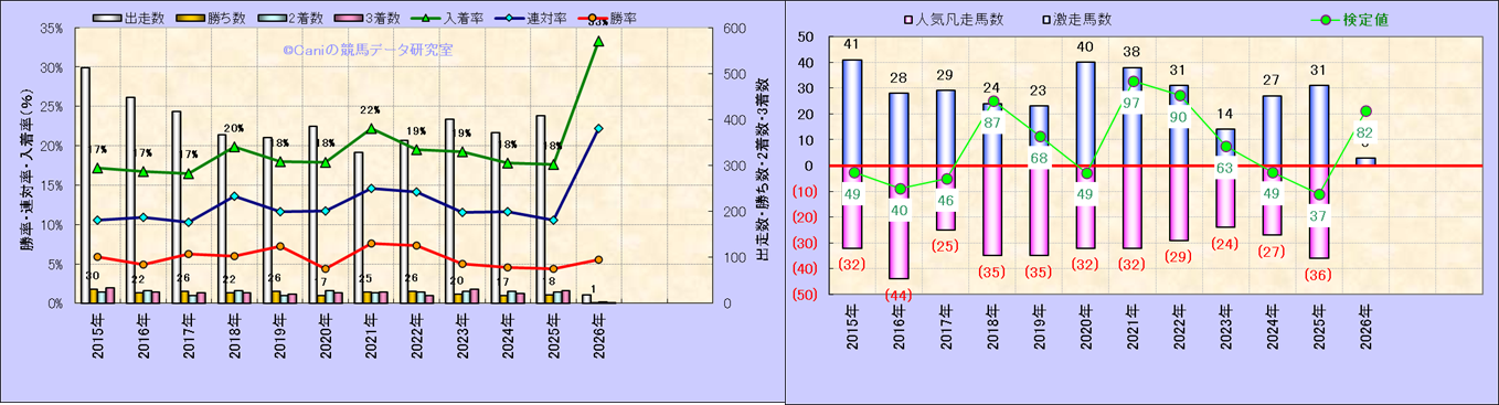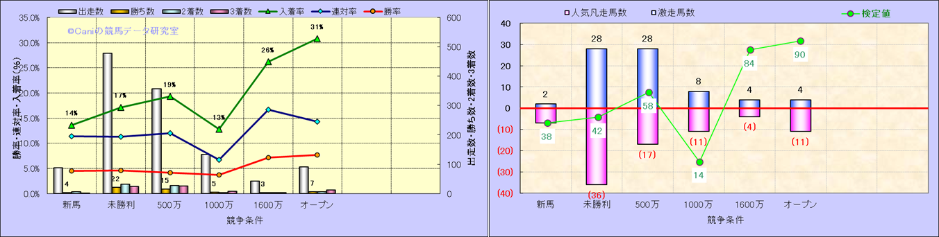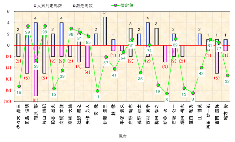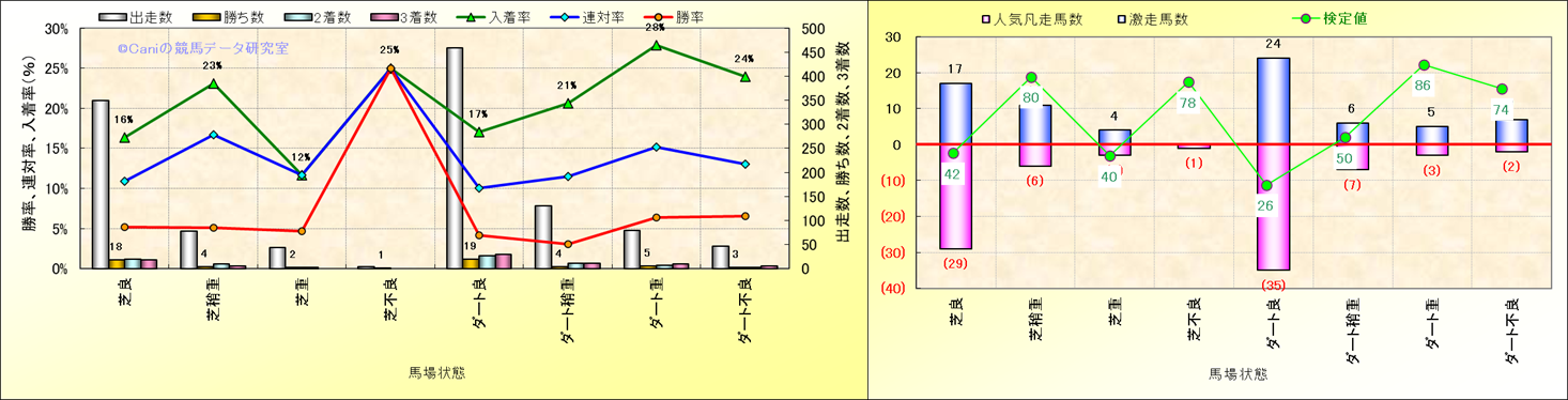人気凡走馬:1-3番人気で着外、激走馬:5-18番人気で入着 |