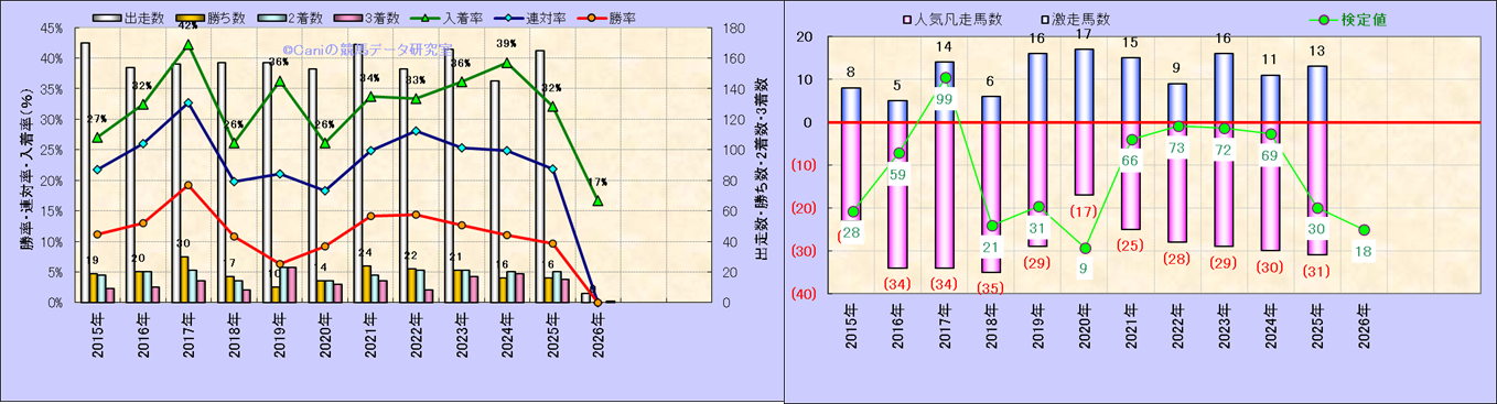 人気凡走馬:1-3番人気で着外、激走馬:5-18番人気で入着 |