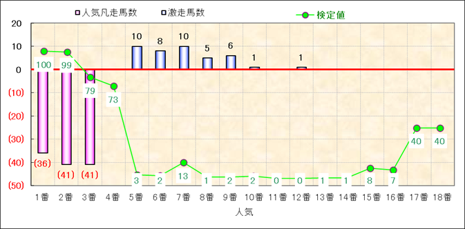 人気凡走馬:1-3番人気で着外、激走馬:5-18番人気で入着 |