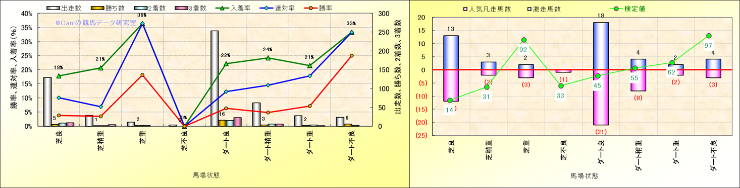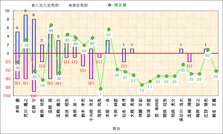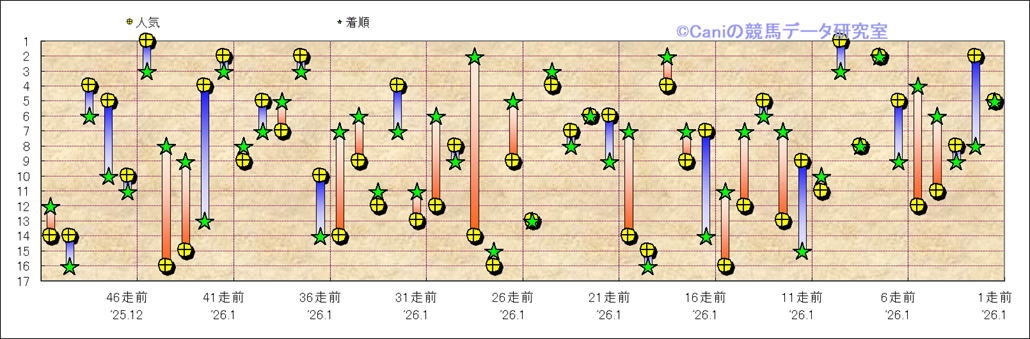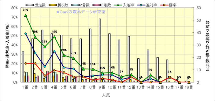 人気凡走馬:1-3番人気で着外、激走馬:5-18番人気で入着 |