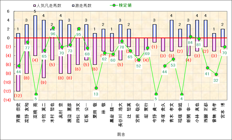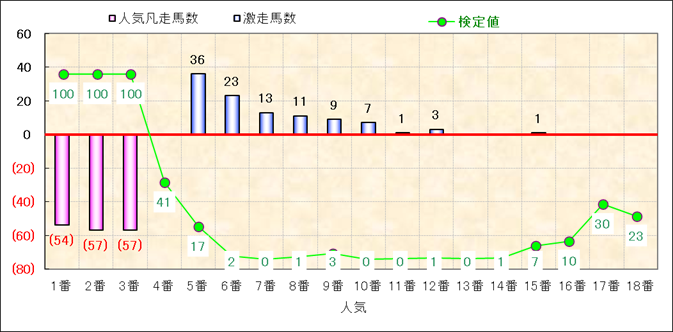 人気凡走馬:1-3番人気で着外、激走馬:5-18番人気で入着 |