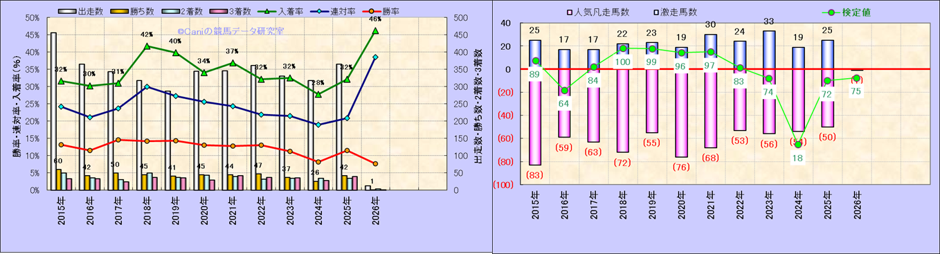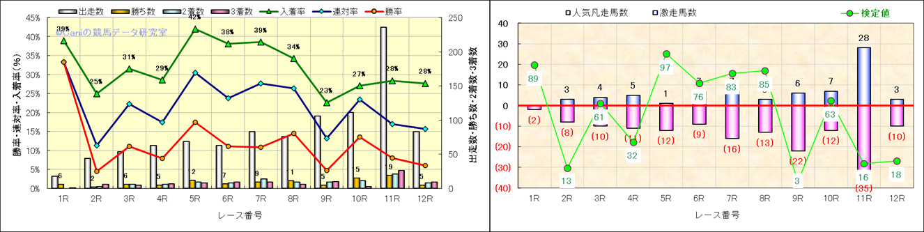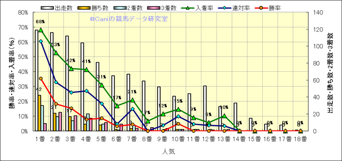 人気凡走馬:1-3番人気で着外、激走馬:5-18番人気で入着 |