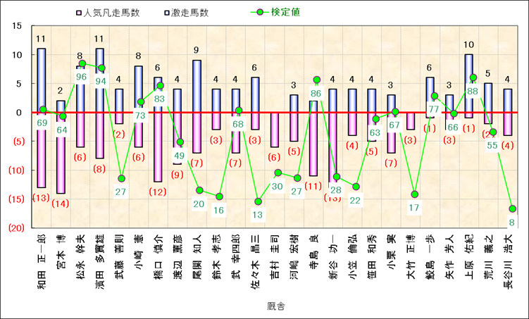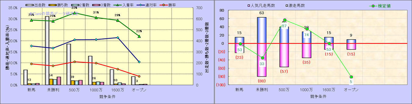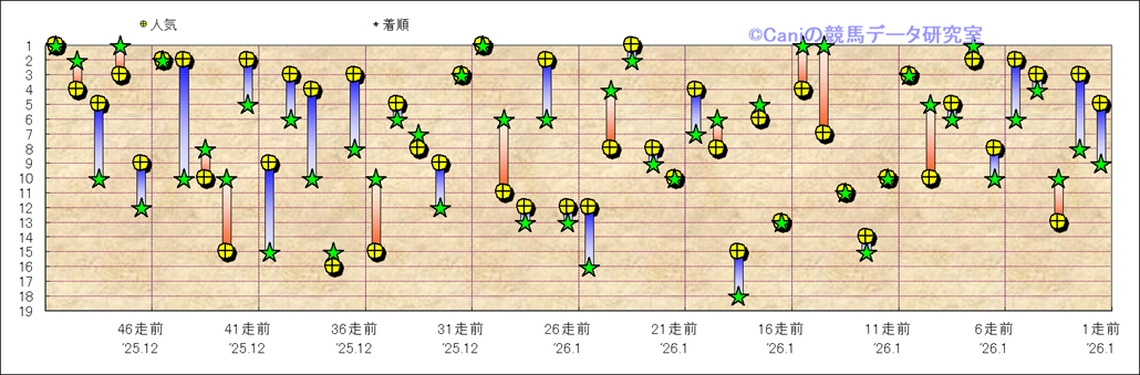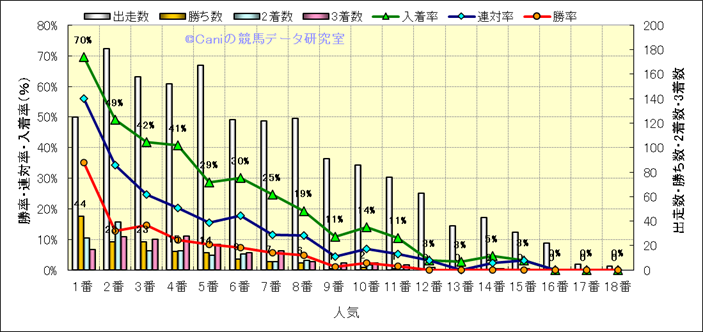 人気凡走馬:1-3番人気で着外、激走馬:5-18番人気で入着 |