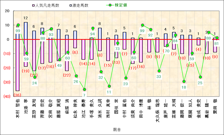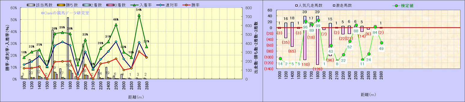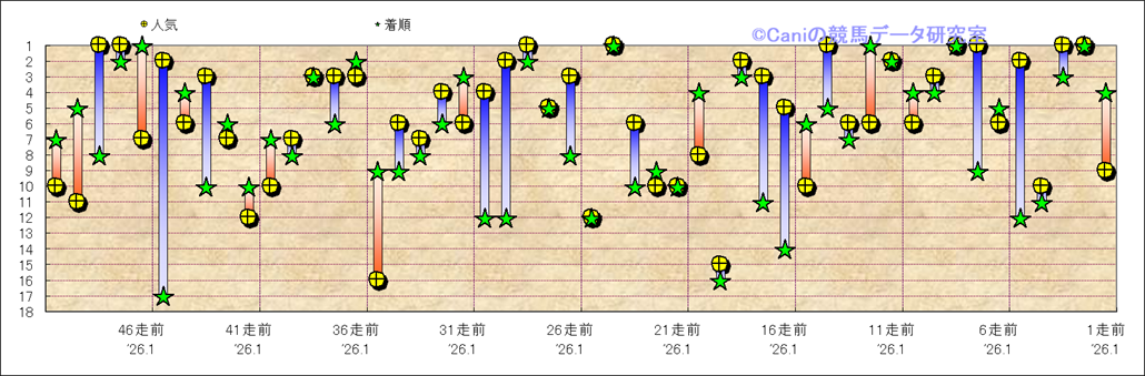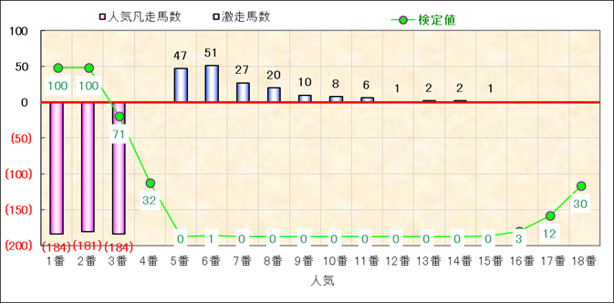 人気凡走馬:1-3番人気で着外、激走馬:5-18番人気で入着 |
