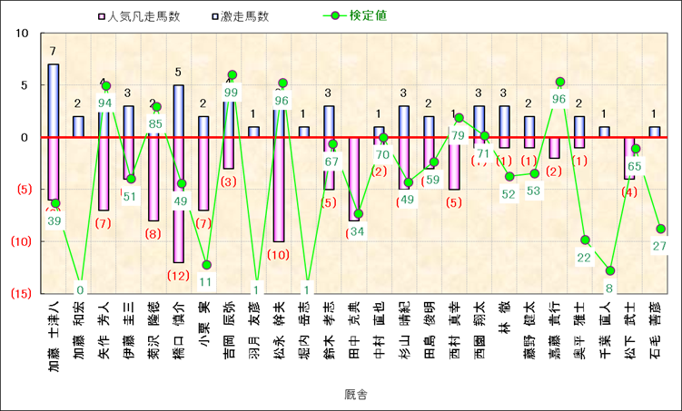 人気凡走馬:1-3番人気で着外、激走馬:5-18番人気で入着 |