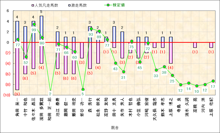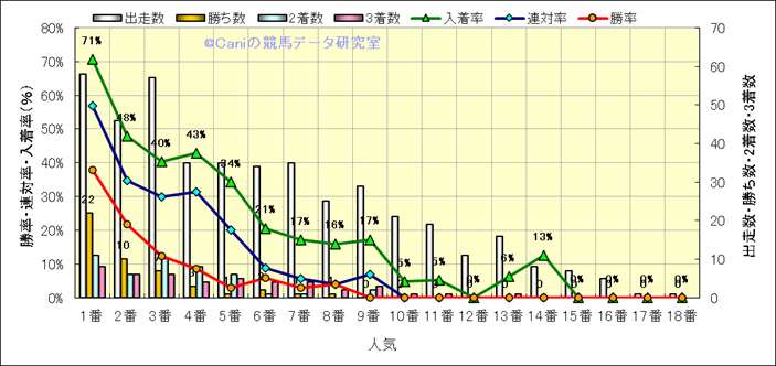 人気凡走馬:1-3番人気で着外、激走馬:5-18番人気で入着 |