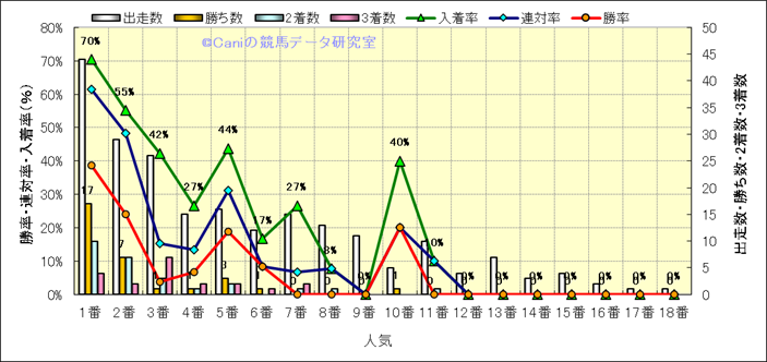 人気凡走馬:1-3番人気で着外、激走馬:5-18番人気で入着 |