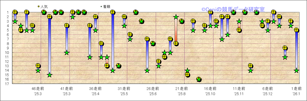 所属馬 近50レースの人気と着順 |