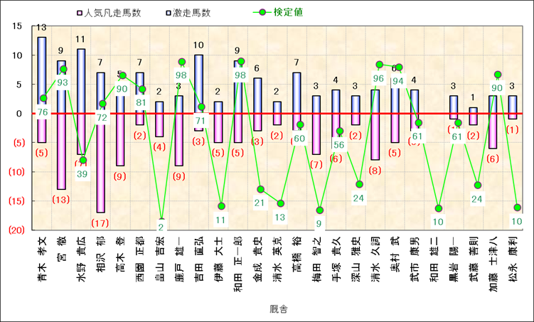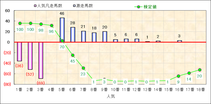 人気凡走馬:1-3番人気で着外、激走馬:5-18番人気で入着 |