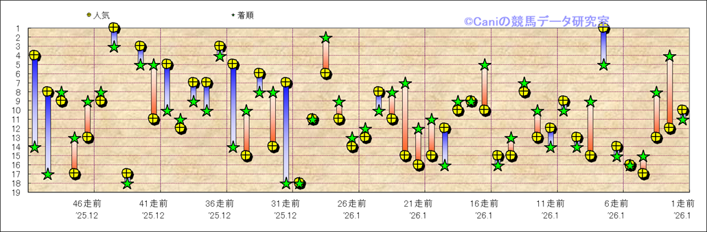 所属馬 近50レースの人気と着順 |