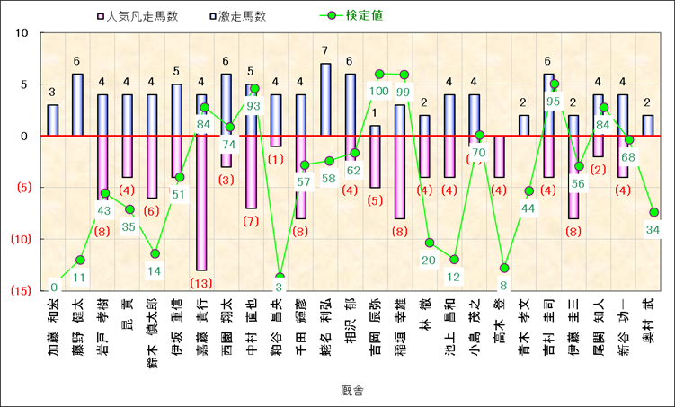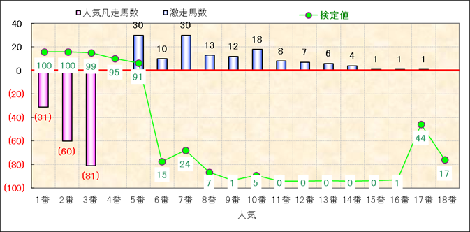 人気凡走馬:1-3番人気で着外、激走馬:5-18番人気で入着 |