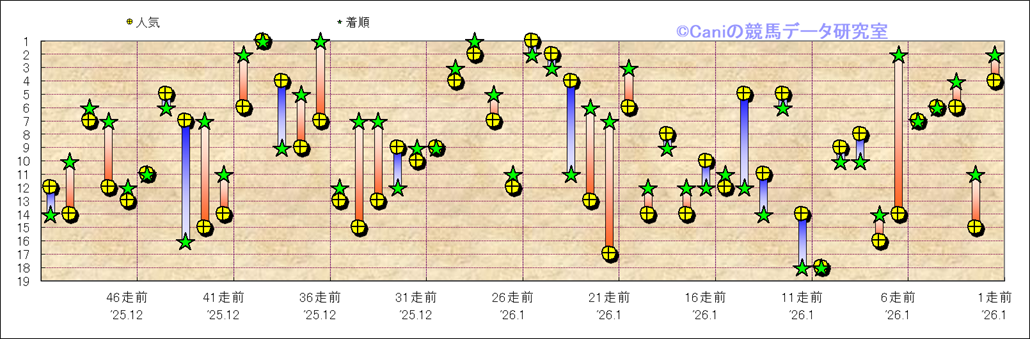 所属馬 近50レースの人気と着順 |
