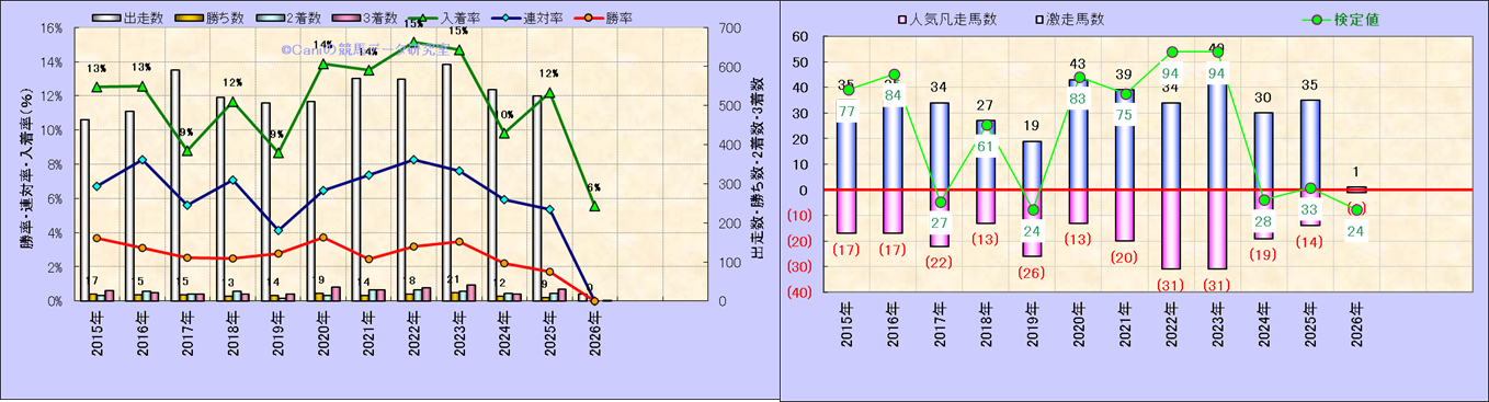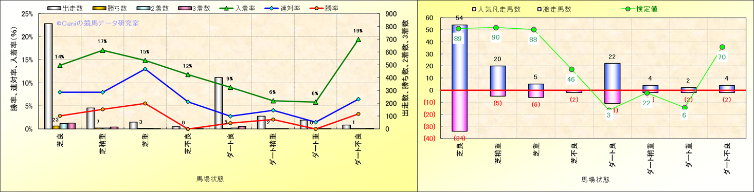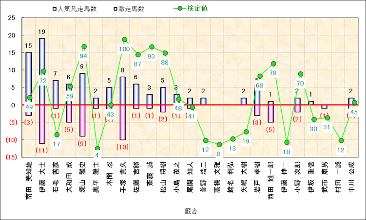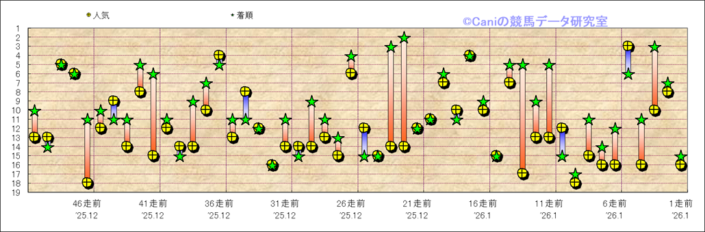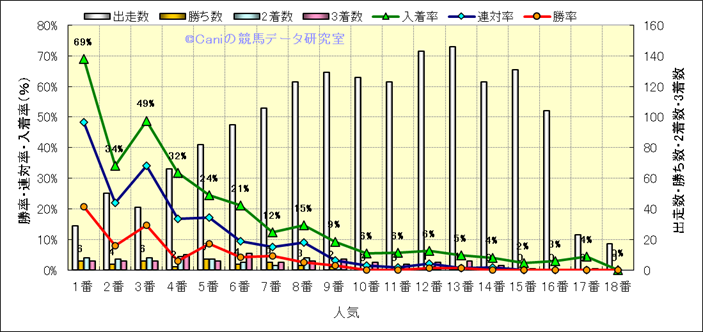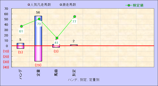 人気凡走馬:1-3番人気で着外、激走馬:5-18番人気で入着 |